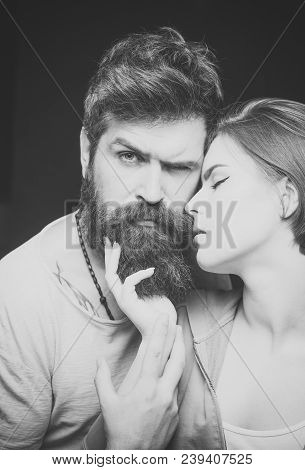 Fashion Shot Of Couple After Haircut Hairstyle Concept Woman On