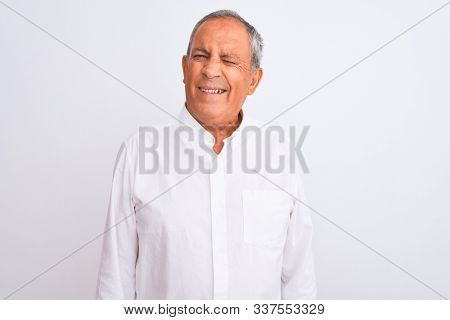Handsome Middle Age Senior Man With Grey Hair Over Isolated Blue